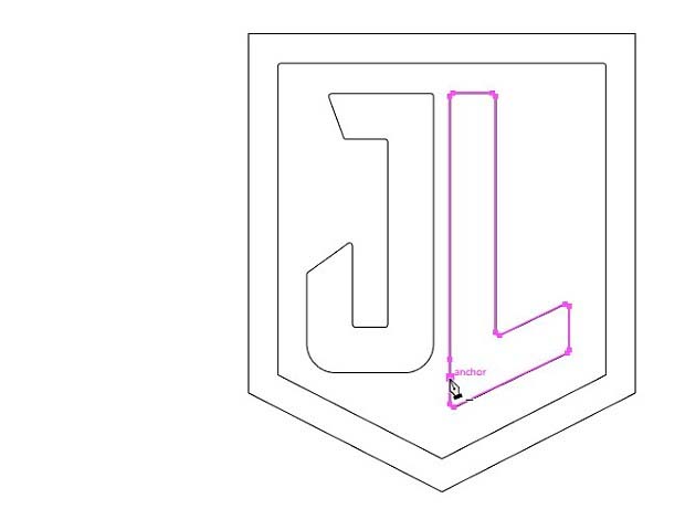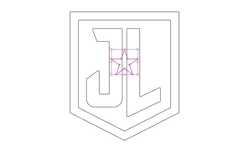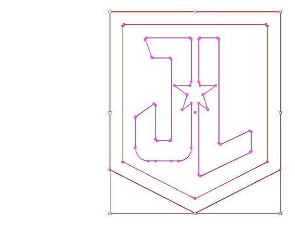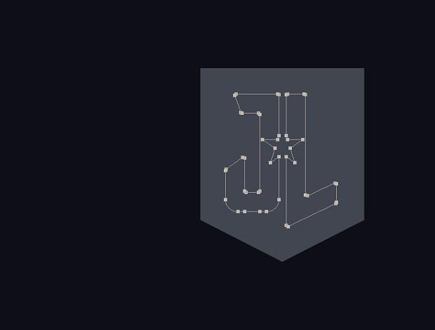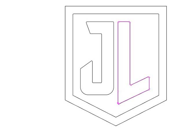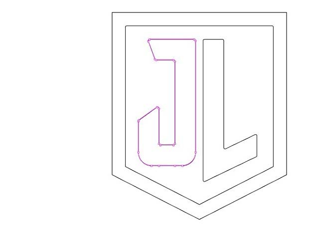 第8步、对外框重复该过程,并将其移动到一个单独的图层上。注意,现在我们有三个形状图层:一个是JL字母层,另一个是外框层,第三个是五边形形状背景。