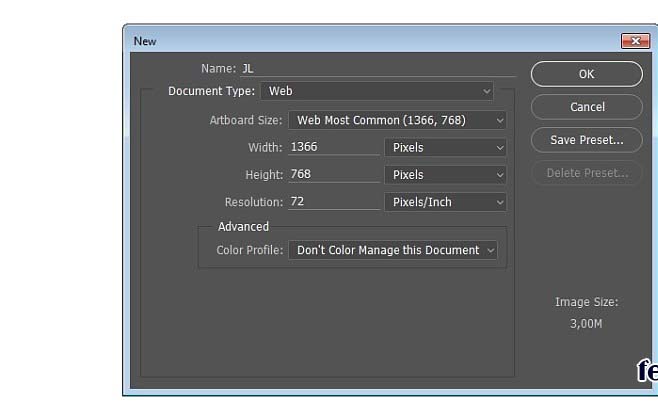 第2步、让我们打开Photoshop。创建一个新文件(Control+N)。