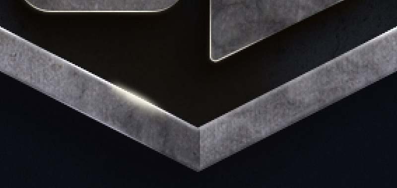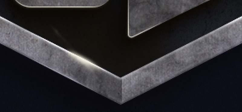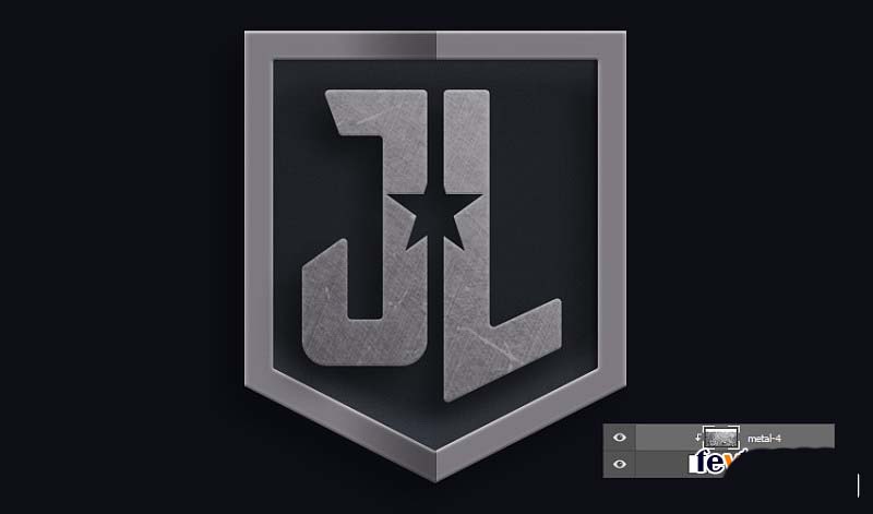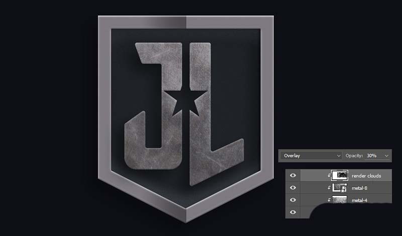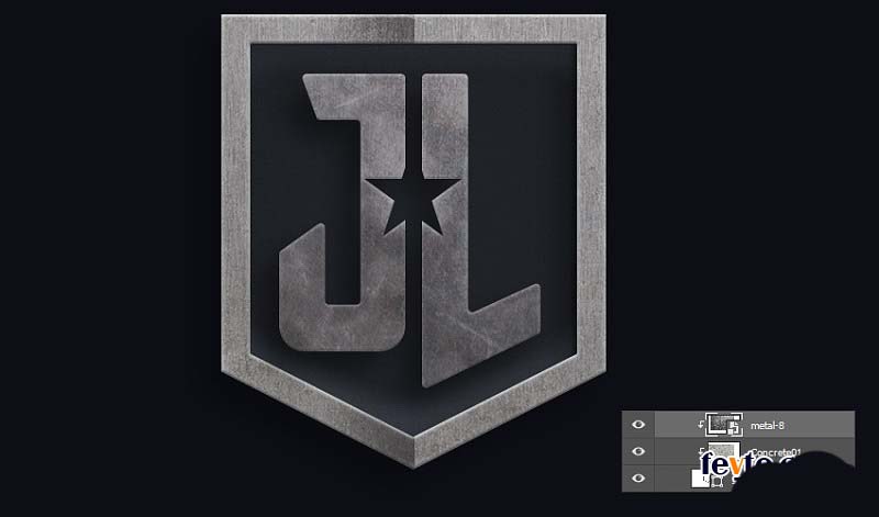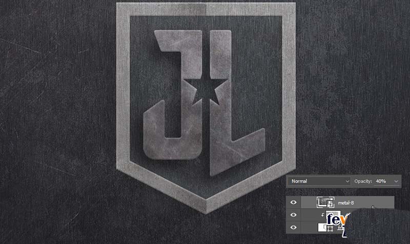 第1步、LOGO现在虽然有立体感觉,但还是比较平面。为了解决这个问题,我们需要添加纹理。获得metal texture number 4。将它放在字母形状图层之上。将其不透明度降低到60%,然后按Ctrl+Alt+G将纹理转换为剪切蒙版。