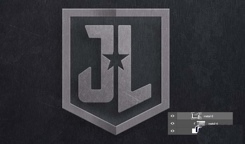 第2步、添加另一个金属纹理,这次是number 8。将其放置在字母形状之上,就像之前的纹理一样,将其转换为剪切蒙版。