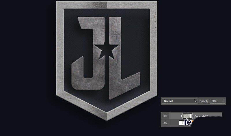 第6步、当然,我们需要为外框添加纹理。这一次,使用concrete texture。将其放在外框图层上方,降低其不透明度,并将其转换为剪切蒙版。