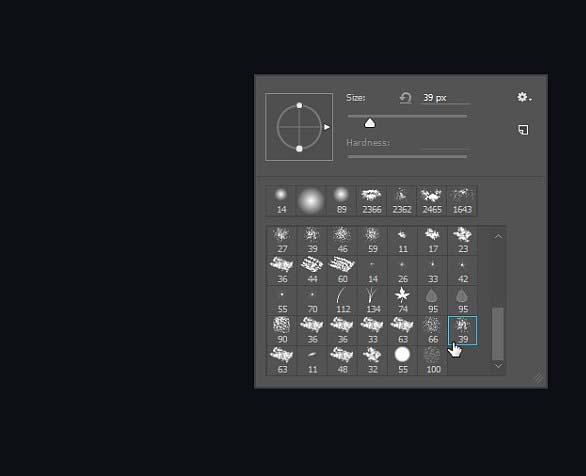 第1步、添加一个新图层并将其放在正义联盟LOGO之上。激活画笔工具。右击打开可用画笔列表。选择散点画笔。在LOGO背景内部涂白色。