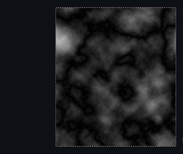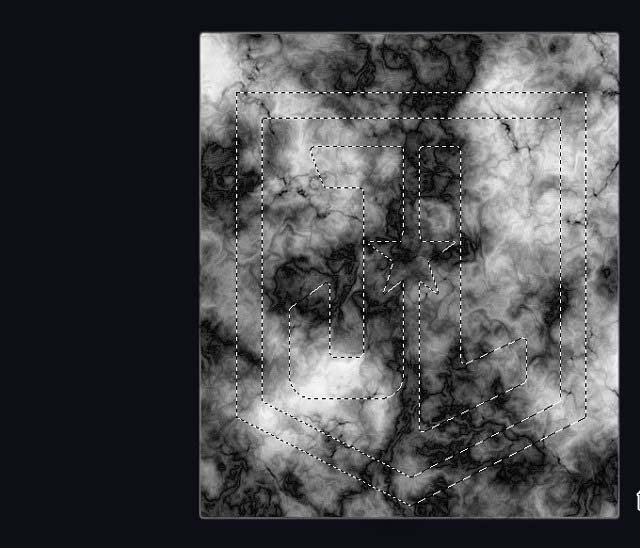 第3步、让我们添加另一个纹理,这次是大理石,为字母加上随机的纹理线条。点击D将背景颜色和前景颜色重置为默认设置,即黑白。新建一个图层,然后做一个新的选区覆盖字母。单击滤镜>渲染>云彩。
