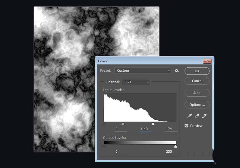 第8步、单击图像>调整>色阶或按Control+L。在色阶对话框中,拖动白色三角形,直到我们在选区内发现有明显的对比。