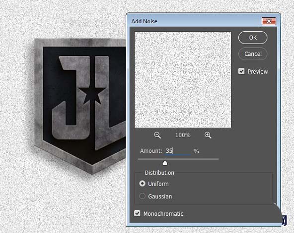 第13步、让我们添加一个粒状的背景,为整个背景创造一个黑暗的感觉。为此,添加一个新图层,然后将其填充为白色。点击滤镜>杂色>添加杂色。确认选择单色。单击确定。将图层混合模式更改为正片叠底以保留所有暗色像素,并隐藏白色像素。