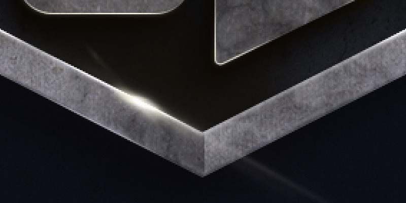 第10步、我们可以在LOGO的其他光照到的部分添加反射光。在这个场景中,虚拟光源被放置在右上角。下一个反射光的最佳场所之一就是LOGO的左下角。就像在之前的步骤中一样,我们只需要在该区域涂上柔和的淡黄色。