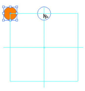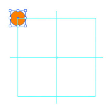 使用选择工具选中绘制好的圆形,按住Alt键进行拖动,将圆形的中心点拖曳至辅助线的交叉点上对齐后,松开鼠标,圆形被复制。