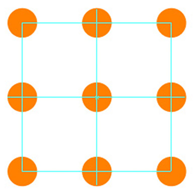 执行“视图>参考线>清除参考线”命令,将参考线移除,使用选择工具选中9个圆形,并执行“对象> 编组”命令,将9个圆形编组。