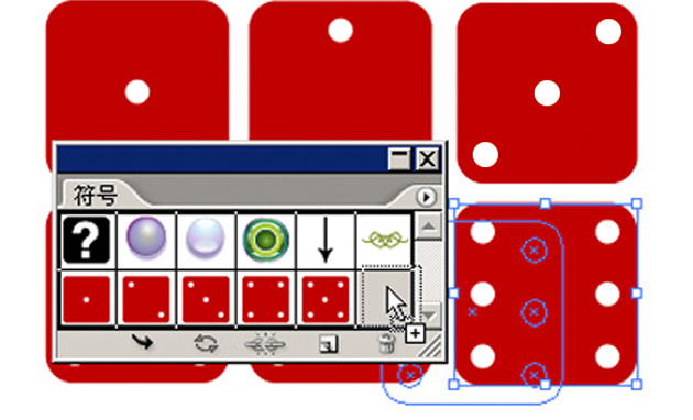 执行“窗口>符号”命令,显示符号调板,依次将6个形状分别拖入符号调板中