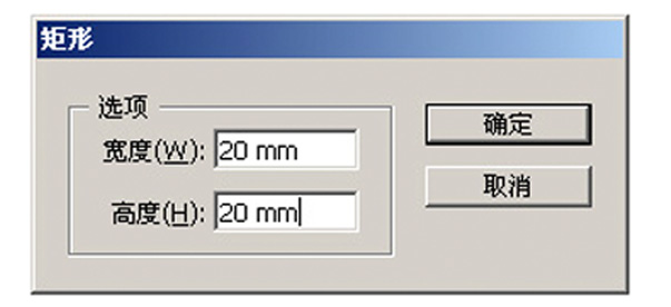 定义完成符号后,以上图形均可以删除,选择矩形工具,在画布上单击,弹出矩形对话框,在对话框中设定矩形的宽度和高度为“20mm”