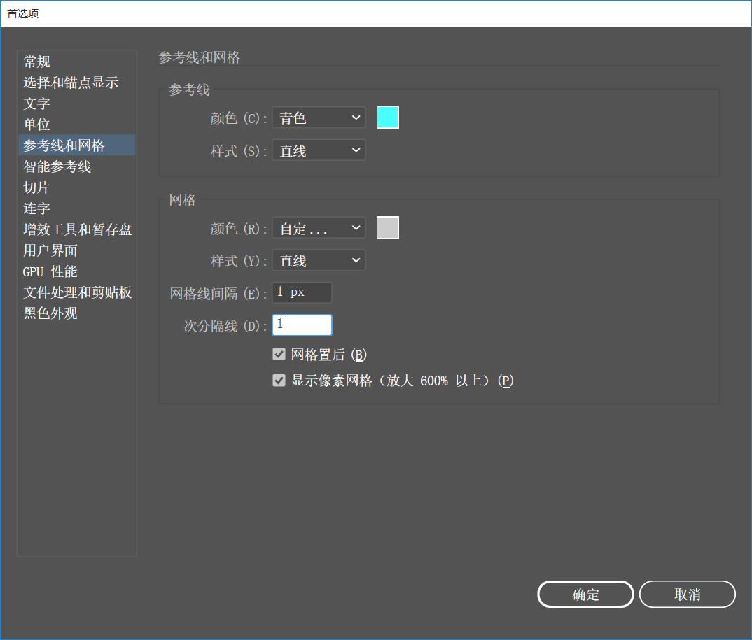 转到编辑>首选项>指南和网格子菜单,然后调整以下设置: