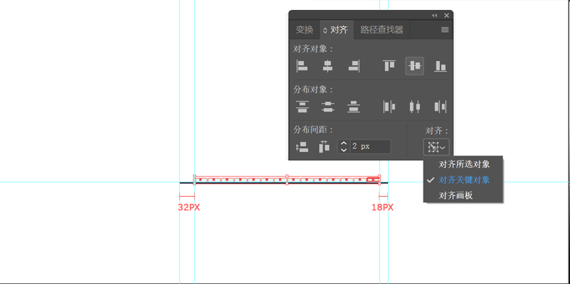 2.绘制一个16 x 4 px的矩形(#363C4C),与刚才创建的上部形状中心对齐。
