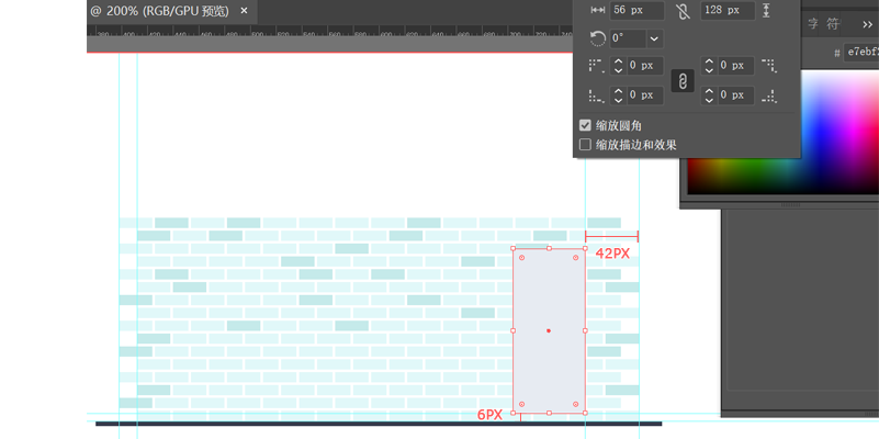 使用56 x 128 px矩形创建冰箱右侧部分的主要形状,我们将使用彩色#E7EBF2 ,然后将这个形状放置 在地板上方6px,距离右边缘42px处。