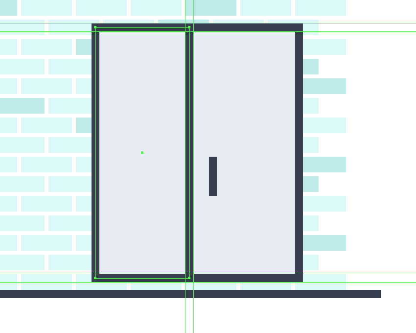 使用4 x 20px的矩形(#363C4C)添加门的手柄,将这个形状放置距离轮廓左侧8像素距底部40像素的距离处。完成后,选择并编组(Control-G)所有三个形状在一起。