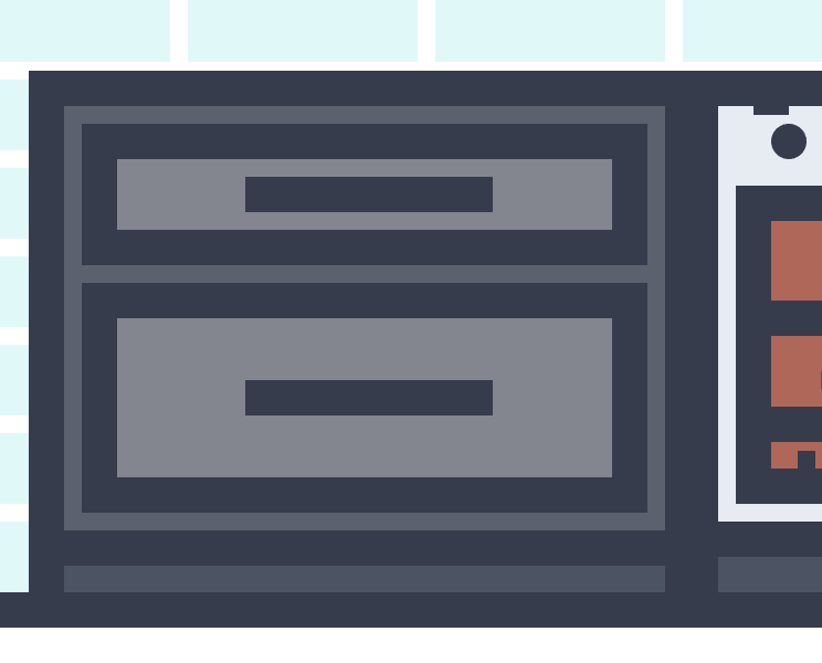 4.绘制2个4 x 3 px矩形(#363C4C)放在烤箱顶部边缘,分别与左右间距4px.将整个火炉编组即完成火炉的绘制。