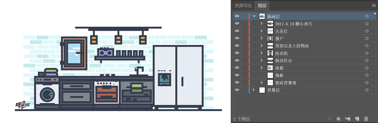 将背景层锁定之后,再继续进行第二步,我们将开始绘制第一个厨房设备:冰箱。