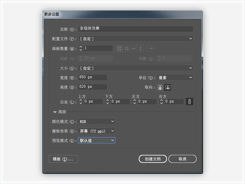 首先,新建一个图层。850*620px,颜色模式为RGB,分辨率为72ppi。启用网格(视图>显示网格)和对齐网格(视图>对齐网格)。编辑>首选项>参考线和网格,并在“网格线间隔”框中输入5px,在“次分隔线”框中输入1px。