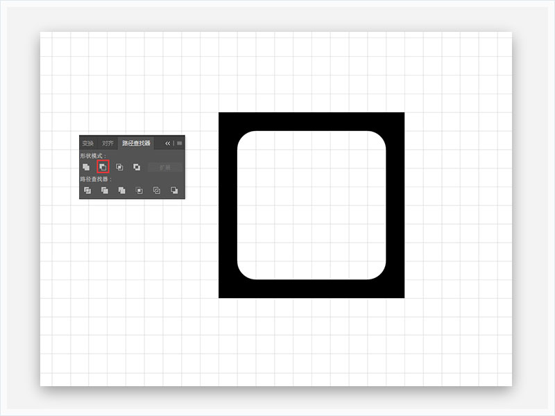 (3)选中两个形状,打开路径查找器面板(窗口> 路径查找器面板),然后点击“减去顶层”,填充颜色改为(R = 0 G = 0 B = 0)。