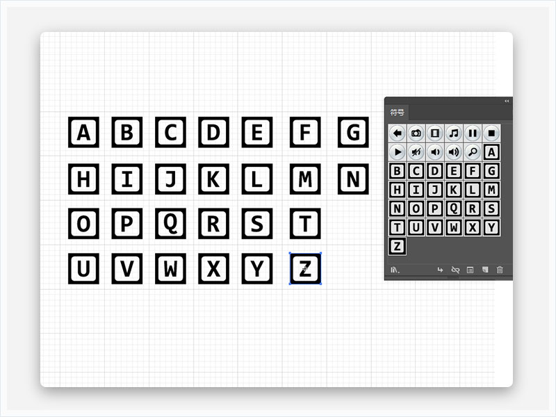 (6)选择您的“ A ”复合路径,打开“ 符号”面板(窗口>符号),然后单击“ 新建符号”按钮将所选形状转换为符号。命名此新符号“ A ”,然后单击 确定。移动到其余的形状,并使用相同的技术将其保存为符号。在“ 符号”面板中的所有符号后,请随意将其从您的画板中删除。