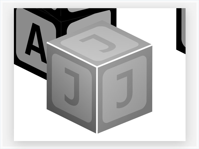 (2)选择紫色立方体并在前面复制(Control-C> Control-F),选择此副本到上一步中制作的黑色字母后面,确保对齐。删掉表面的字母J。
