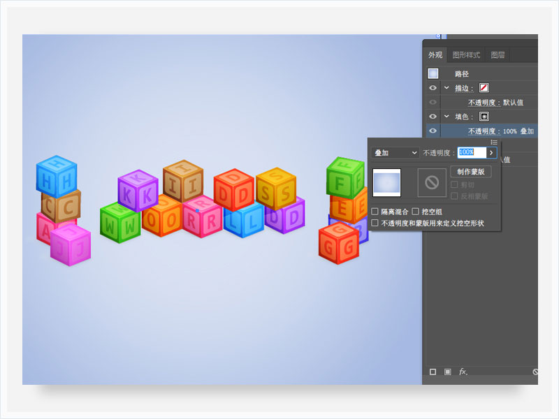 教程结束,以上就是AI制作彩色3D英文字母积木文字效果教程的全部内容,希望大家喜欢!