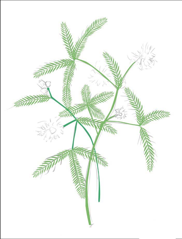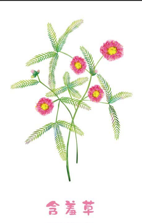 8、花和花苞,使用图层叠加法,亮部使用颜色减淡模式,暗部阴影使用正片叠底模式。这样,含羞草就画好了