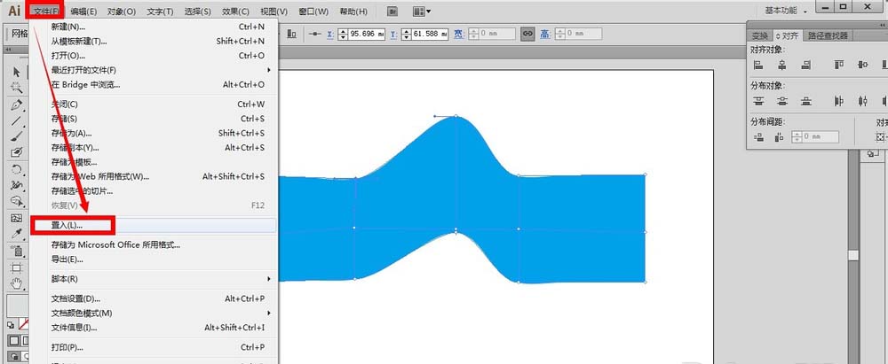 1、接着前面制作完的网格封套继续,我们点击文件——置入,把我们的图片素材导入到画布