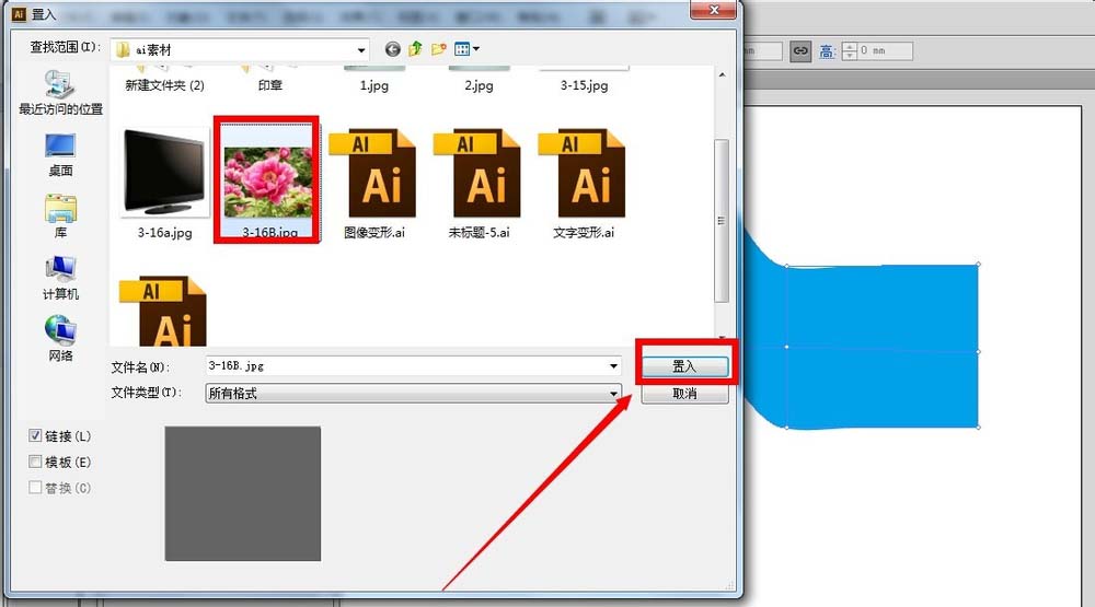 2、在弹出的界面窗口,找到自己要导入的图片,选中它,点击置入