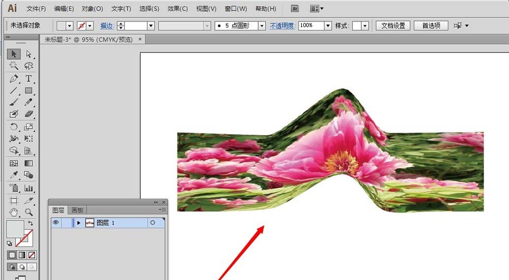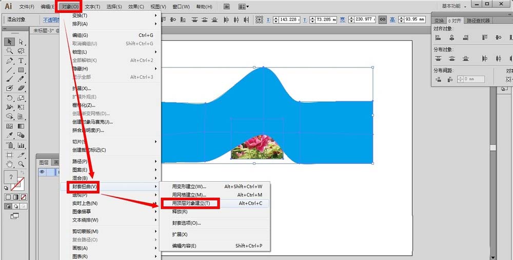 5、然后我们用选择工具,全部选中画布上的对象,点击“对象”——“封套扭曲”——“用顶层对象建立”