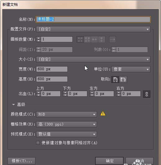 1、新建一文档600x600px,颜色模式为RGB.如图。