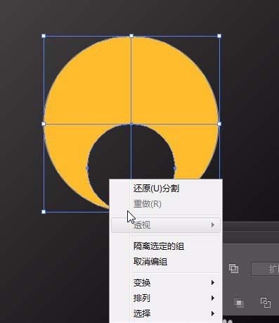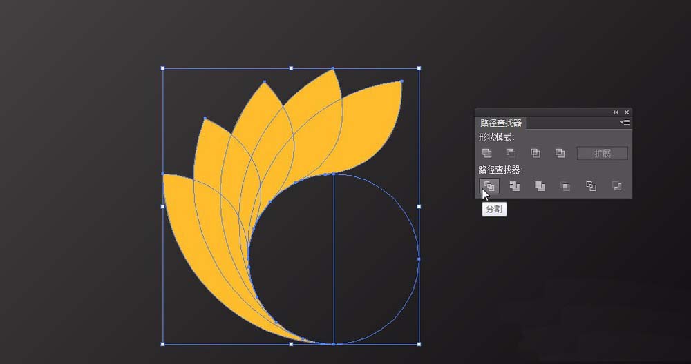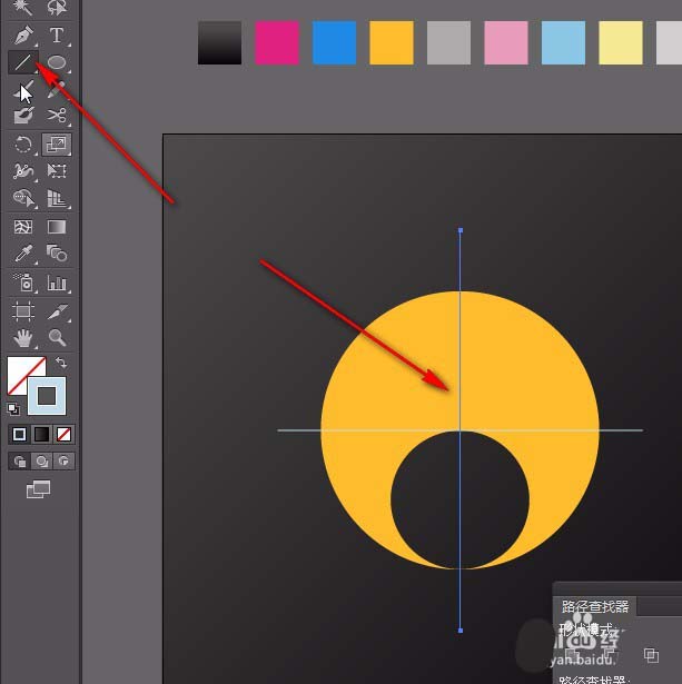 5、选择【直线段工具】按住shift+alt键绘制如图直线。选中这三个路径。在路径查找器里点击【分割】,点右键,【取消编组】删除多余的。如图。