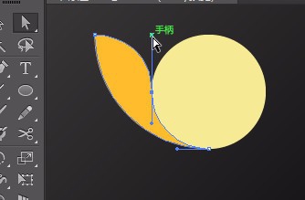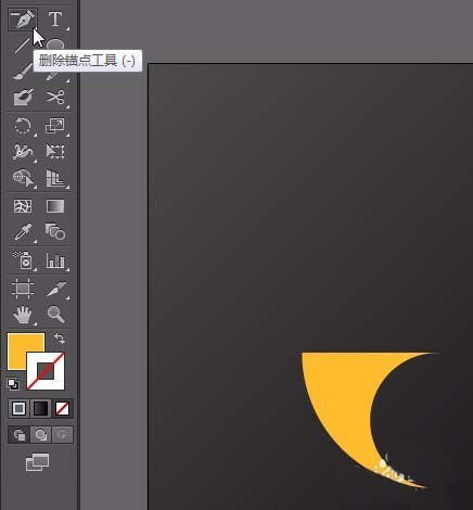 6、选择【删除锚点工具】在如图位置点击。形成如图形状。按ctrl+F黏贴一个圆。在如图位置。或者绘制一个125x125的圆也一样。