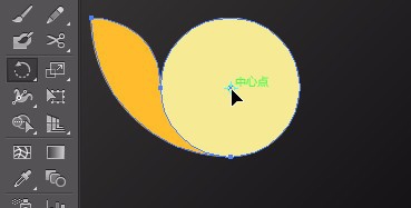 8、选择【旋转工具】将中心点放在圆心,按住alt键,拖动花瓣。差不多-20°左右;然后按ctrl+D再制。有五瓣就可以了。