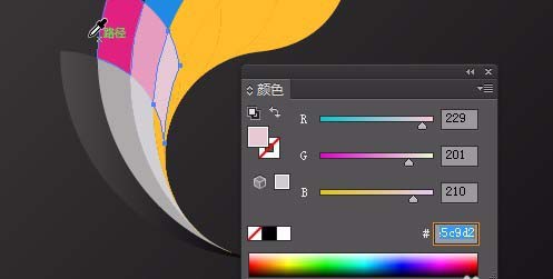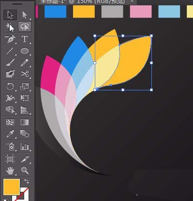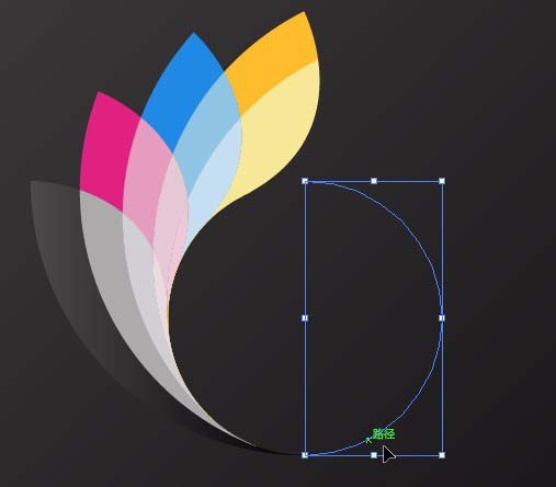 22、最后一块删除。删除多余的路径。框选花瓣,编组。