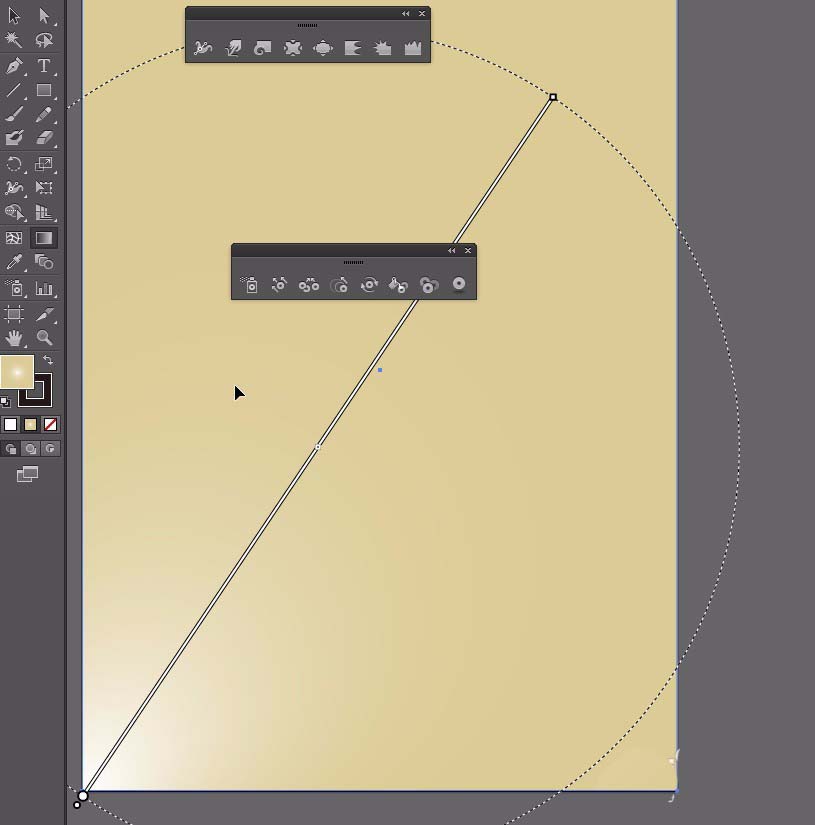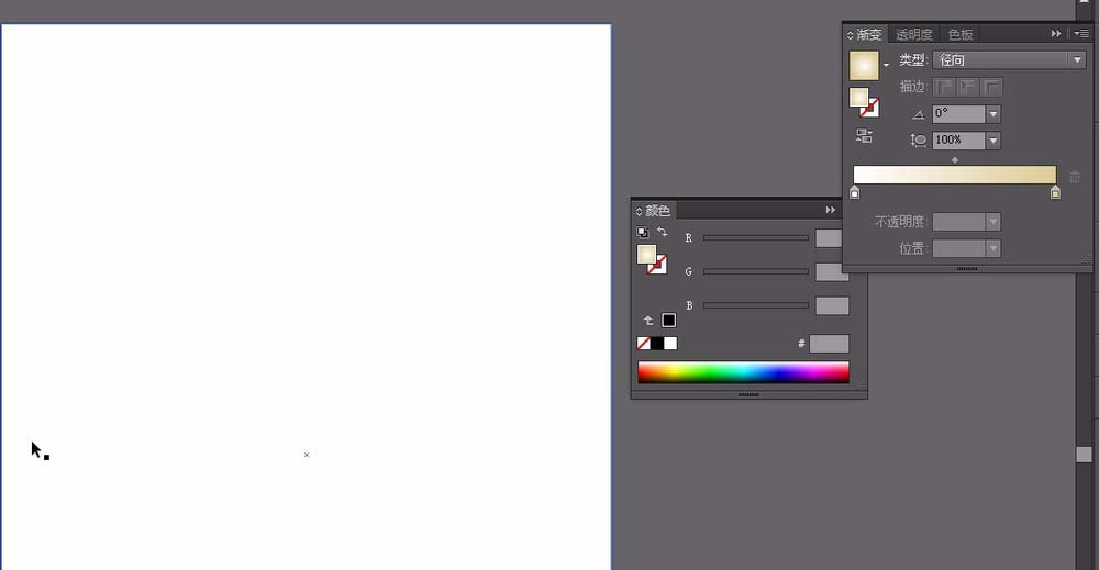 2、用【矩形工具】绘制一个页面大小的矩形。填充径向渐变①#ffffff②#dbcb95;调整合适的渐变位置