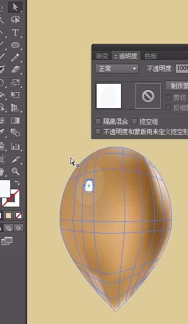 4、描边为无,前景色无,点击【网格工具】,按F6打开颜色面板,输入想要颜色#ba8d53;