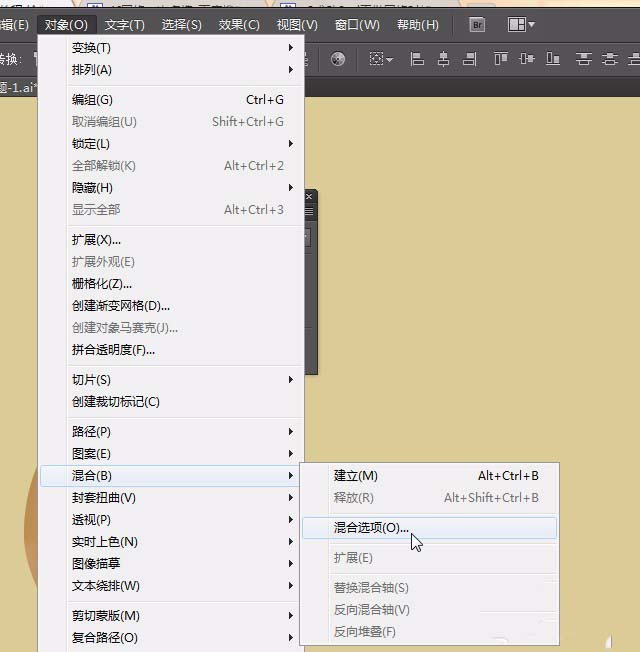 8、选中再这两个椭圆,选择菜单栏【对象】【混合】【混合选项】弹出对话框,间距:指定胡步数:50点击,确定。如图。再点击,菜单栏【对象】【混合】【建立】菜单命令,如图。