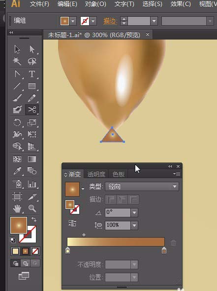 6、选则【椭圆工具】在气球上绘制一个椭圆,填充白色#ffffff;然后选择直接选择工具,调整椭圆,完成后点击窗口-->透明度改变不透明度10%;