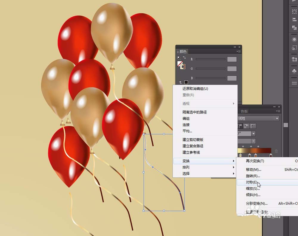 气球是陈常见的东西,在需要气氛的场地都会有漂亮的气球,该怎么制作一束精美的气球呢?效果如图。很简单,这次教程主要运用了,钢笔工具,直接选择工具,网格工具。网格的运用方法。网格点添加颜色的技巧。有兴趣的朋友可以试试。
