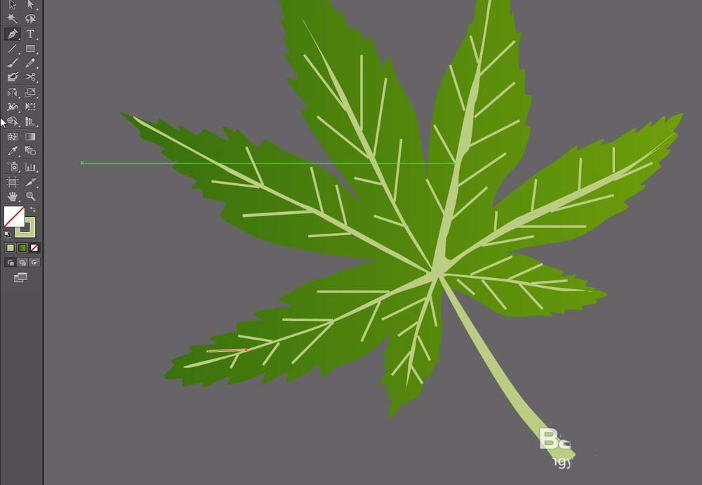 6、叶脉选中,和杆,编组。ctrl+g;前景色填色#bacd81;