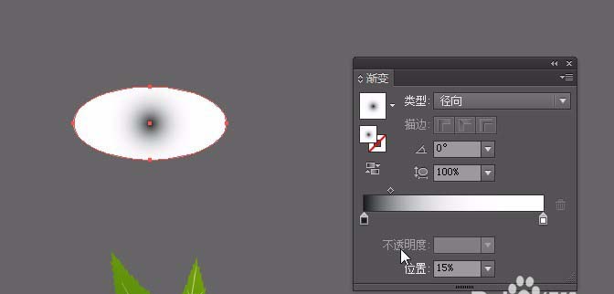 9、按L绘制一个椭圆。填充渐变色。①#171c1b②#ffffff;径向渐变。将小的渐变滑块位置改成15%;颜色模式为:正片叠底;