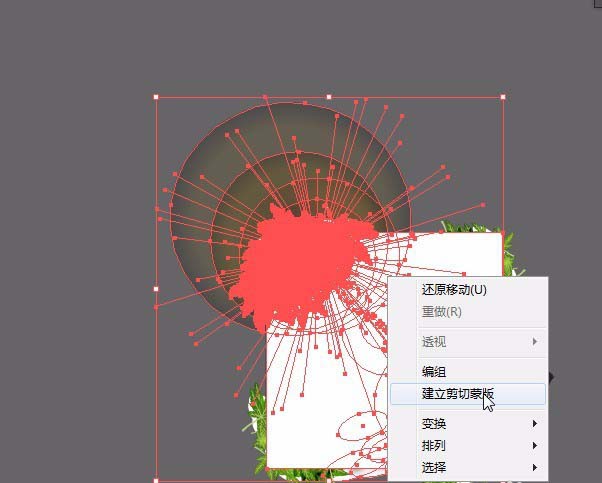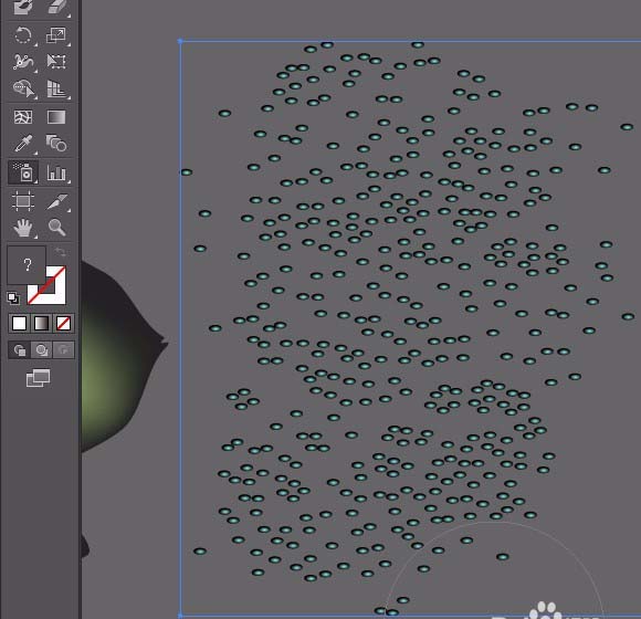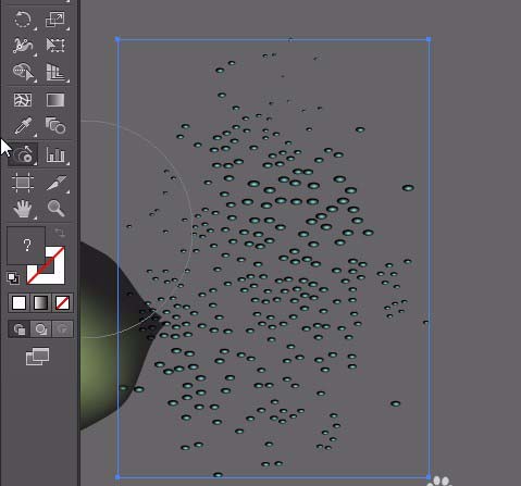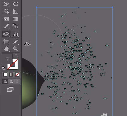 16、选择喷枪工具如图。然后选择符号缩放工具,按住alt键将四周缩小。然后选择【紧缩工具】将他们缩紧一点。好了之后,放在页面上。 多复制几个。如图放置,并编组。ctrl+G;点右键放置在最底层。