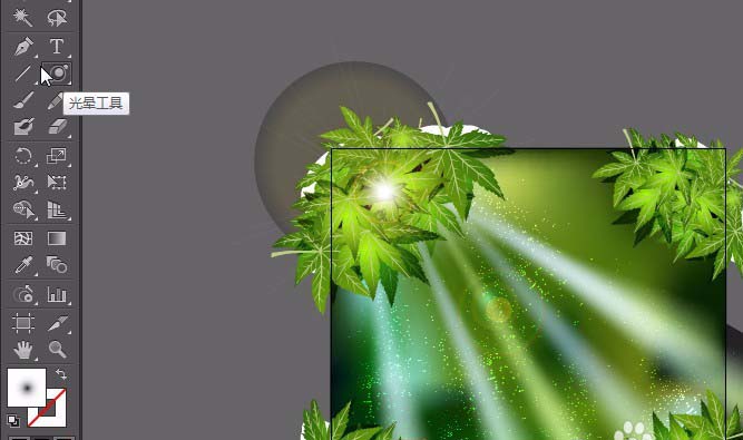 18、复制上面的圆环,复制多个做树枝的投影。选择光阴工具。在页面中点击一下。放在如图位置。调整好后如图。