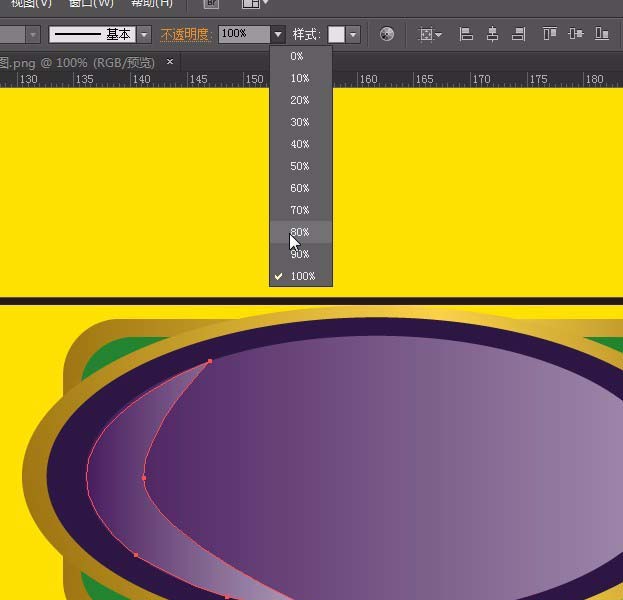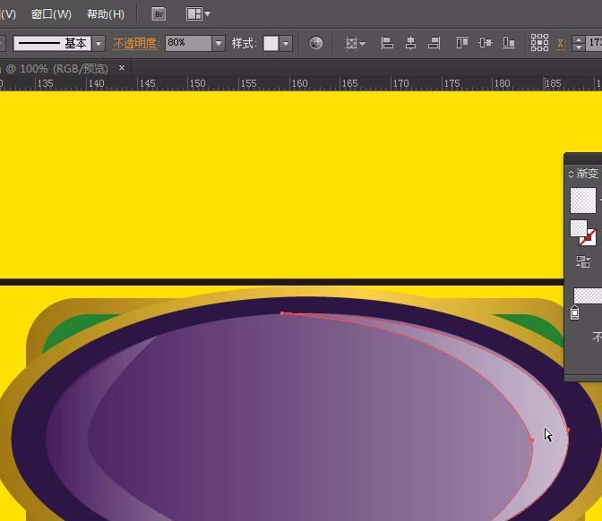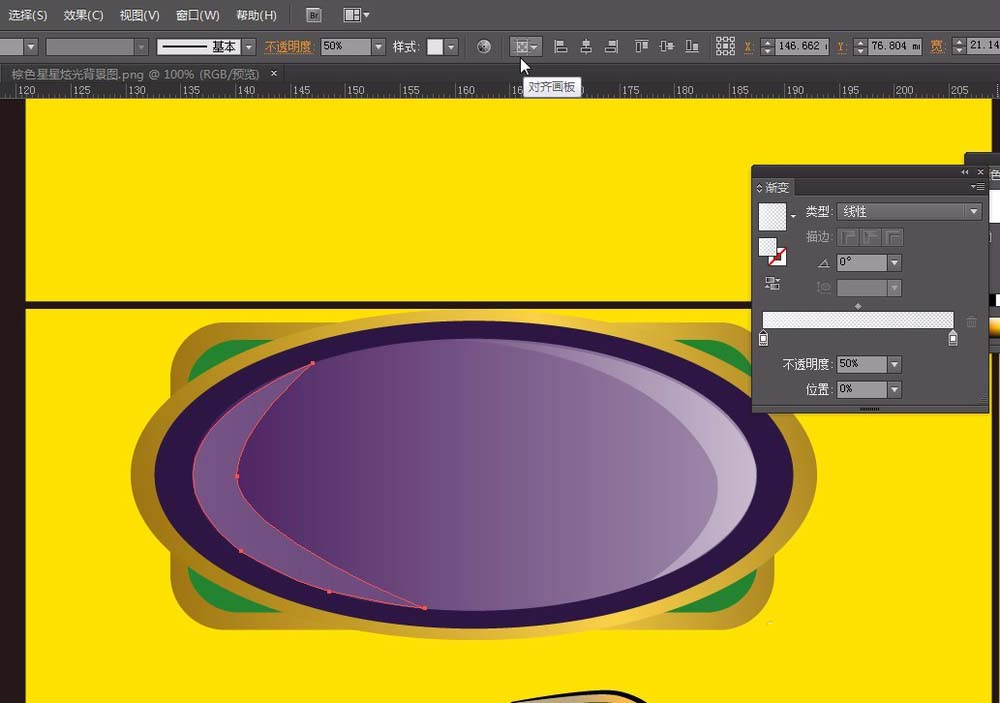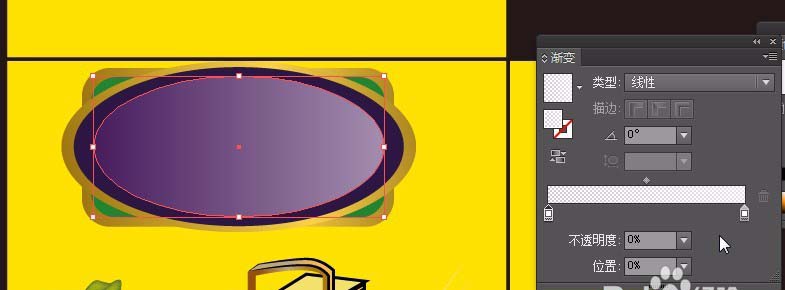 12、用钢笔工具绘制如图形状,改变透明度为80%;调整一下,在渐变里调换一下50%和0%不透明度的渐变滑块,更改不透明度为50%,如图,输入文字,字体为方正稚艺简体 字体,颜色为白色,如图。