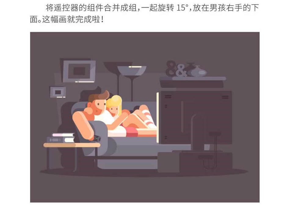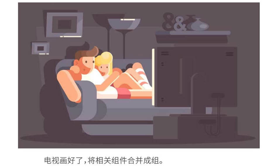 AI教程:手把手教你制作家庭温馨场景小插画,教程主要用到了AI形状组合、布尔运算等技能,打造的场景插画由沙发、沙发上的情侣、电视、以及其他装饰组成,画面营造的非常温馨和真实,好了,下面就让我们开始学习吧!