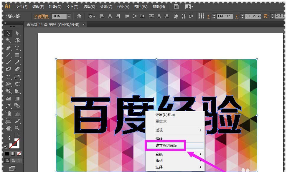 8、此时,小伙伴们再右击一下鼠标,在出现的列表面板上点击选中”建立剪切蒙版“的选项。
