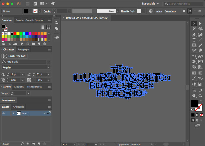 1 、 在ai当中输入你需要的文字