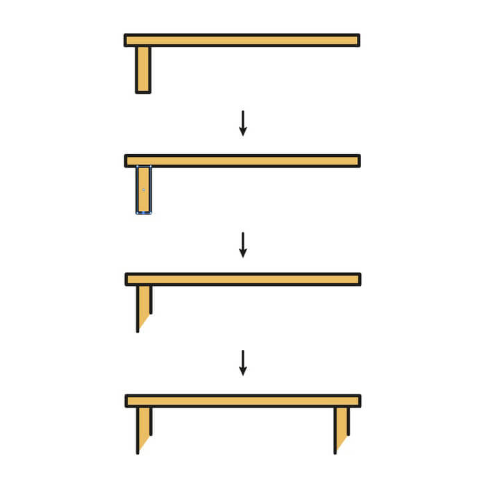 然后,使用直接选择工具(A)向上移动锚点,如下图所示。复制桌腿(Cmd/Ctrl+C> Cmd/Ctrl+F)并将其放在桌子的另一边。