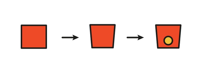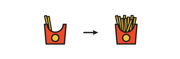 现在我们绘制一些美味的炸薯条!首先,我们需要绘制一个102 x 94px的矩形(颜色:#F04903),描边为6px,并使用直接选择工具(A)选择下方的锚点,将锚点向内移动8px。