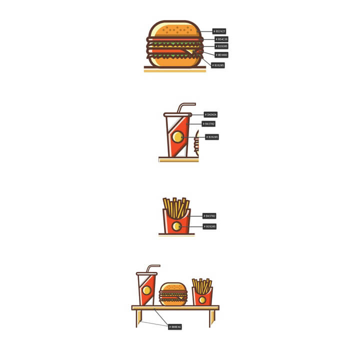 重复以前的过程与构成汉堡包的其他形状。使用下图所示的填充颜色。